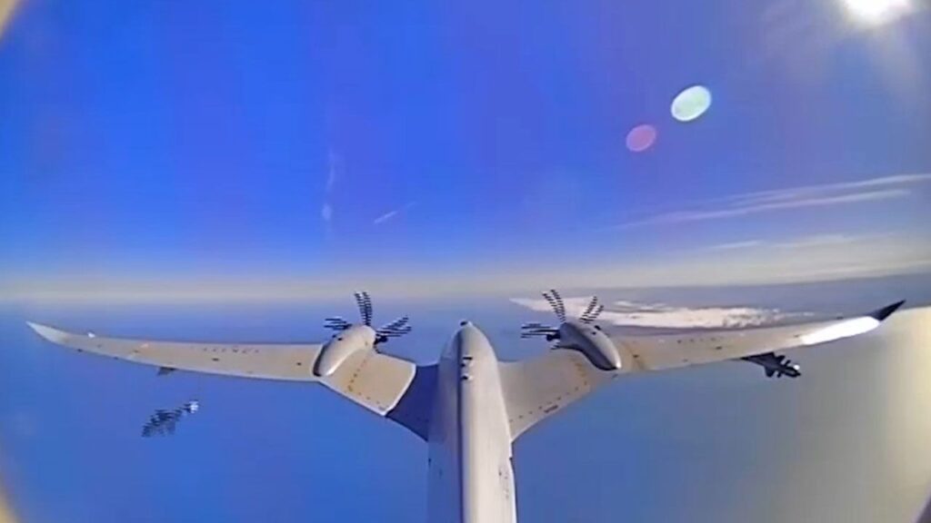 Bayraktar AKINCI TİHA, EREN Yüksek Hızlı Çok Amaçlı Dolanan Mühimmat ile gerçekleştirdiği hava-hava atış testinde gökyüzündeki hedef İHA’yı tam isabetle